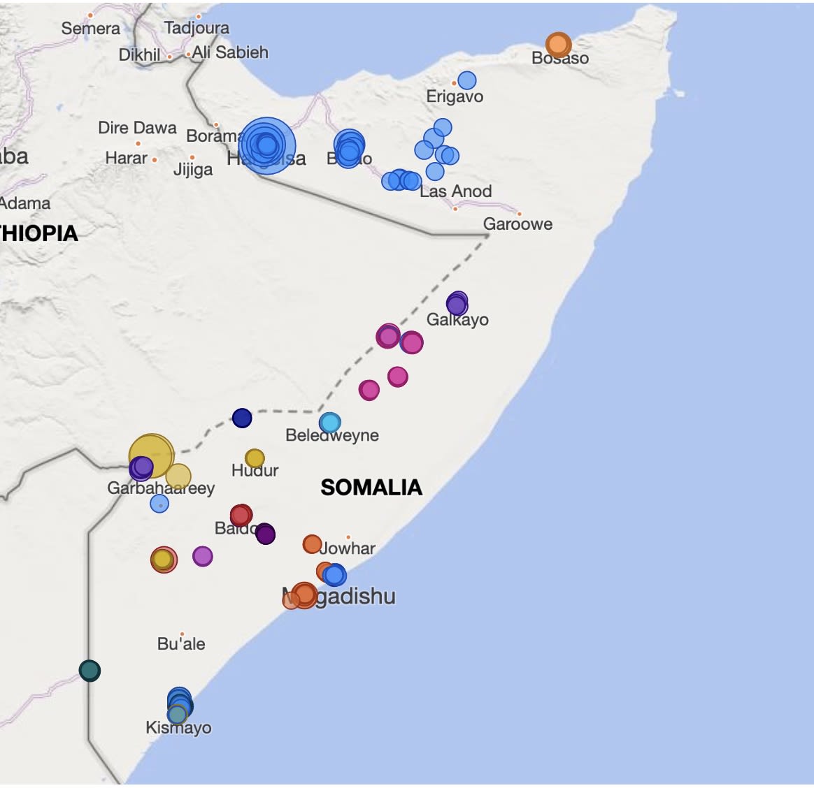 IDP settlements in Somalia are predominantly concentrated in and around urban centres, as shown in the CCCM Site Monitoring Dashboard.