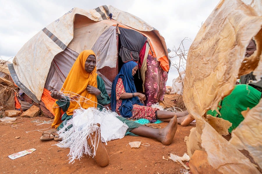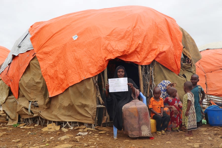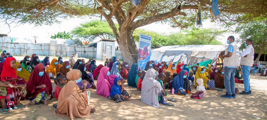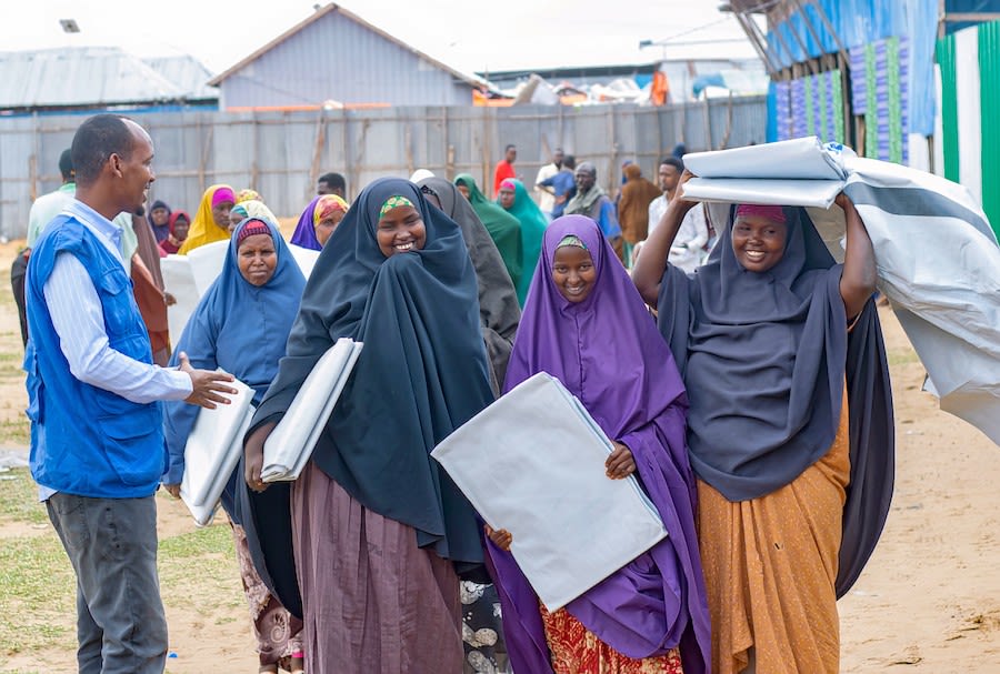 Displaced women receive shelter materials in Mogadishu. IOM 2022.
