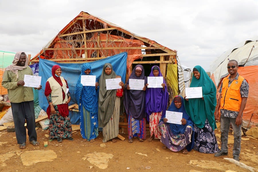 "When I was displaced from Idow Liban village to Afgooye, we initially settled on open land. However, we were later evicted by the landowners, leading us to seek refuge at Albarako camp. Fortunately, the local authorities negotiated a three-year land tenure agreement for us, which has brought about a positive change in our lives. Prior to this agreement, we lived in fear of eviction, which prevented us from planning for the future or starting small businesses. Thanks to the training we received, we now understand our rights and have gained confidence. Anyone in the displacement site can start a small business without the fear of eviction."